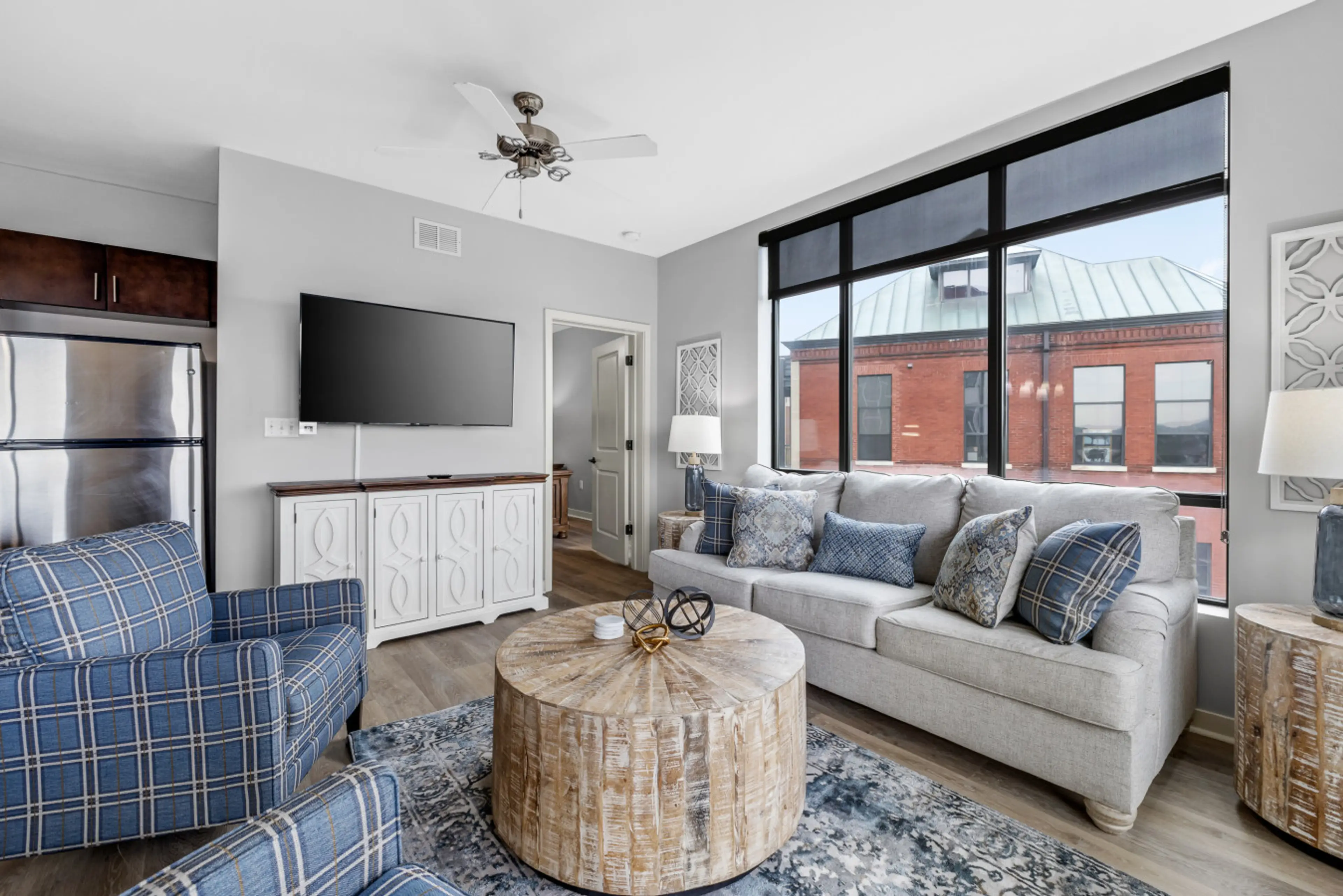 Building sits on a bluff overlooking city and river. Luxurious downtown brand new Nashville 2 Bedroom -2 Bath High Floor Corner Condo unit. This unit looks directly into the city and river! If this unit isn't available, we have multiple units in the building if you look up Forte Vacations. Condo f...
